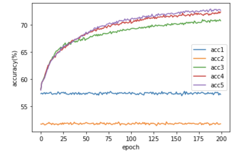 I was curious about the effect of number of layers on the accuracy of model. Therefore, I decided to vary the number of layers for the training model from single layer to 5 layers, then test the trend of accuracy during the training. Given the limited amount of time, I set the epoch to 200.