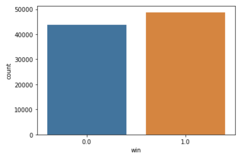 The first attribute labeled as 'win' is to be set as y (result). Before separating data, I decided to change the value of win when it's -1 to 0.