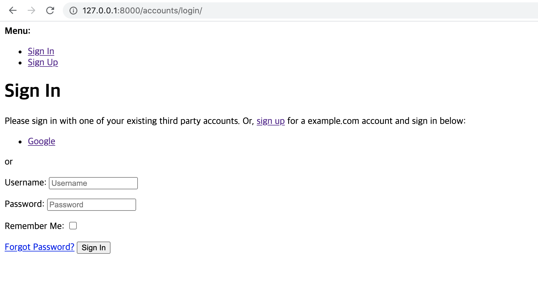 이런 페이지가 성공적으로 뜬다. 하지만 로그인하려고 Google 버튼을 눌러주면 아래와 같은 에러가 뜬다.